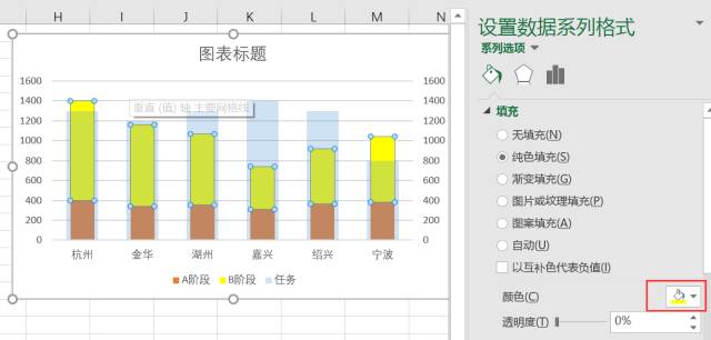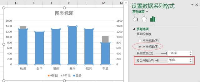 选择“任务”的系列,将系列绘制在次坐标轴