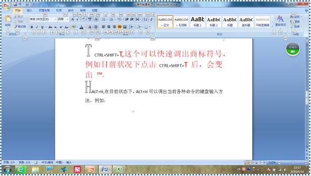 Ctrl+Shift+T,快速调出商标符号; WIN+T,快速切换当前任务栏。